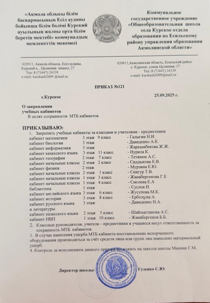 Коммунальное государственное учреждение «Общеобразовательная школа села Курское отдела образования по Есильскому району управления образования Акмолинской области»