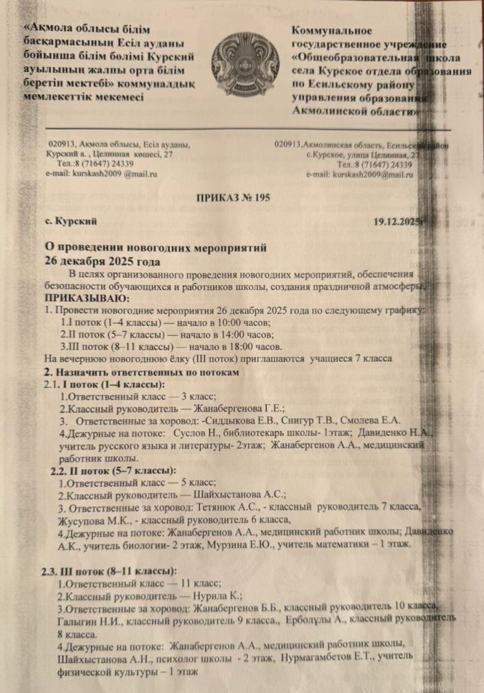 Жаңа жылдық іс-шараларды өткізу туралы бұйрық
